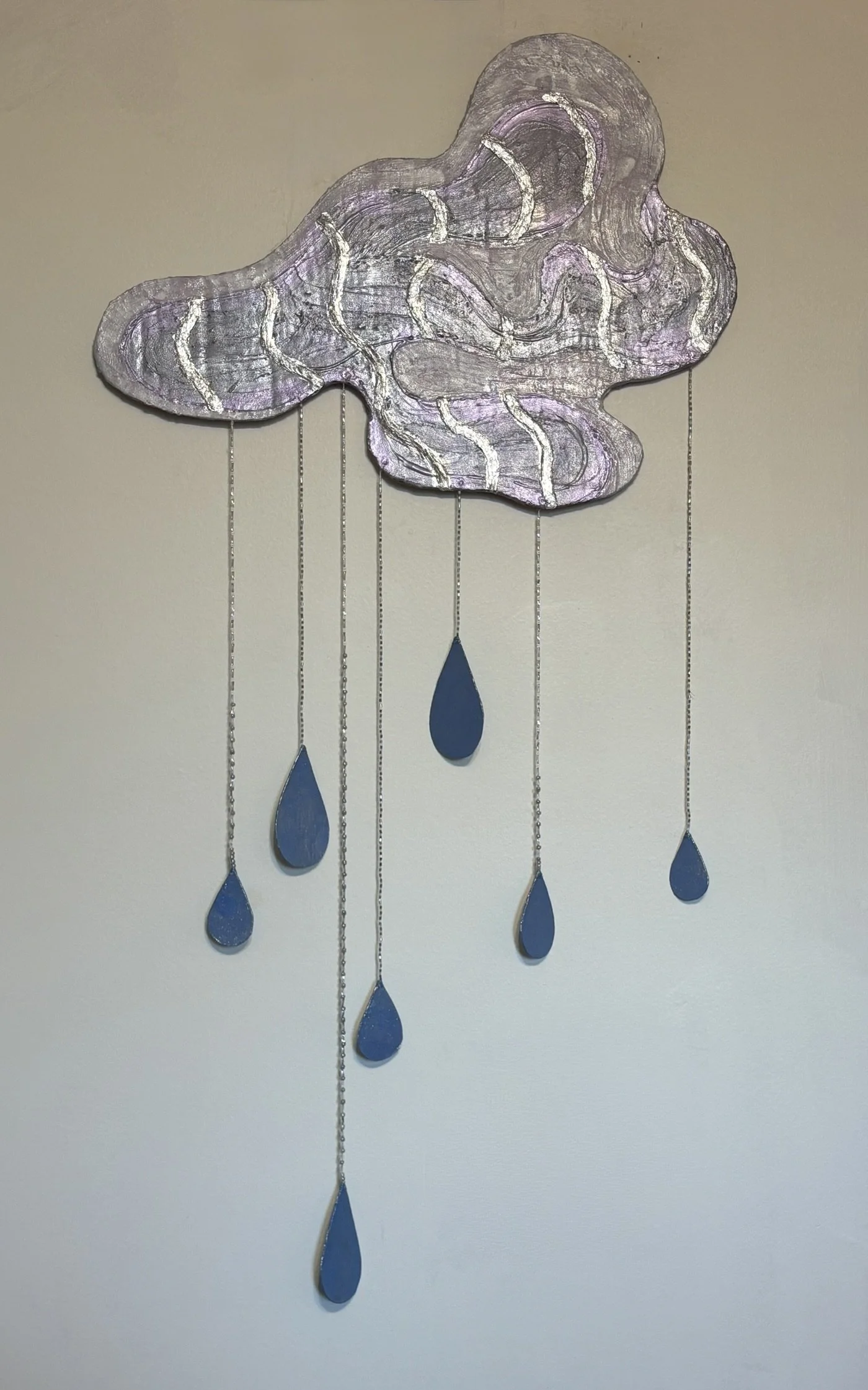 mixed media (papier-mâché, acrylic, recycled material), 41" x 20" x .5"